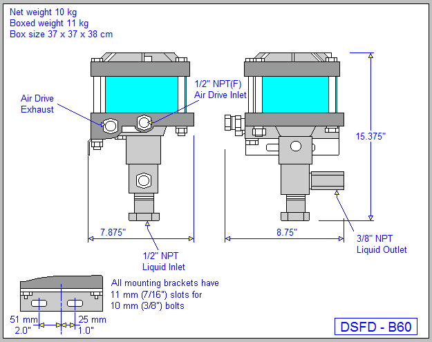 Haskel型號DSFD-B60 2.2HP氣動液體泵的標稱比例為60:1,它利用單個空氣頭將液體壓力提升到Z大6500 PSIG。